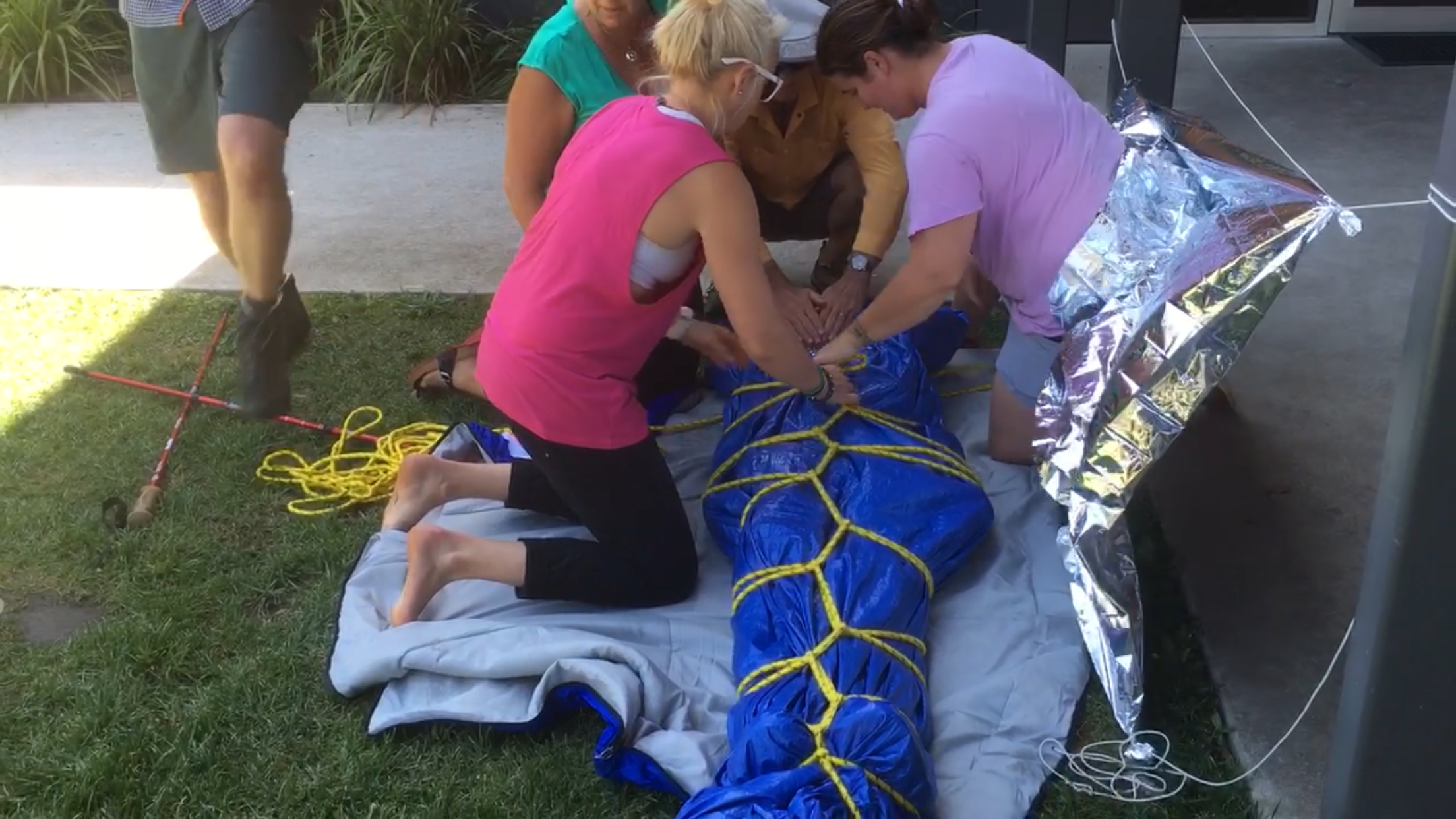 Given the remoteness of where I’ll be, dialling 000 / 999 / 911 isn’t an option. Should something happen we need to be able to manage the patient for a longer period of time and most likely have to move them. This is where the burrito comes in. It’s a way of wrapping the patient up so you can keep them secure and warm and also makes it easier to move them.