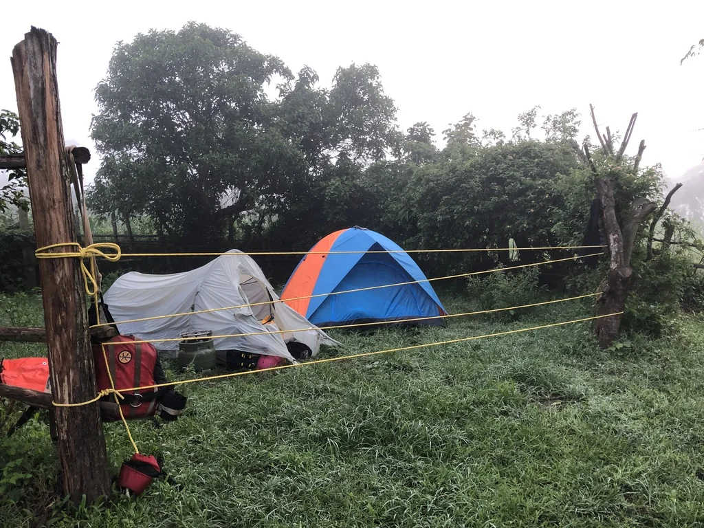 One night we were camping very close to a pod of hippos that had required some careful negotiation to get round. We found some cow pens – partially fenced areas. We set up camp and used the rope from my throwbag to form a barrier across the front of the pen. Hippos get out to graze at night – the rope was going to keep them away from us.